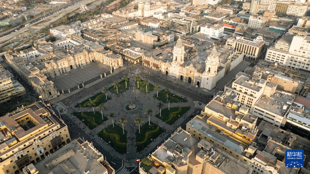 這是10月13日拍攝的秘魯首都利馬老城的阿馬斯廣場(無人機照片)。