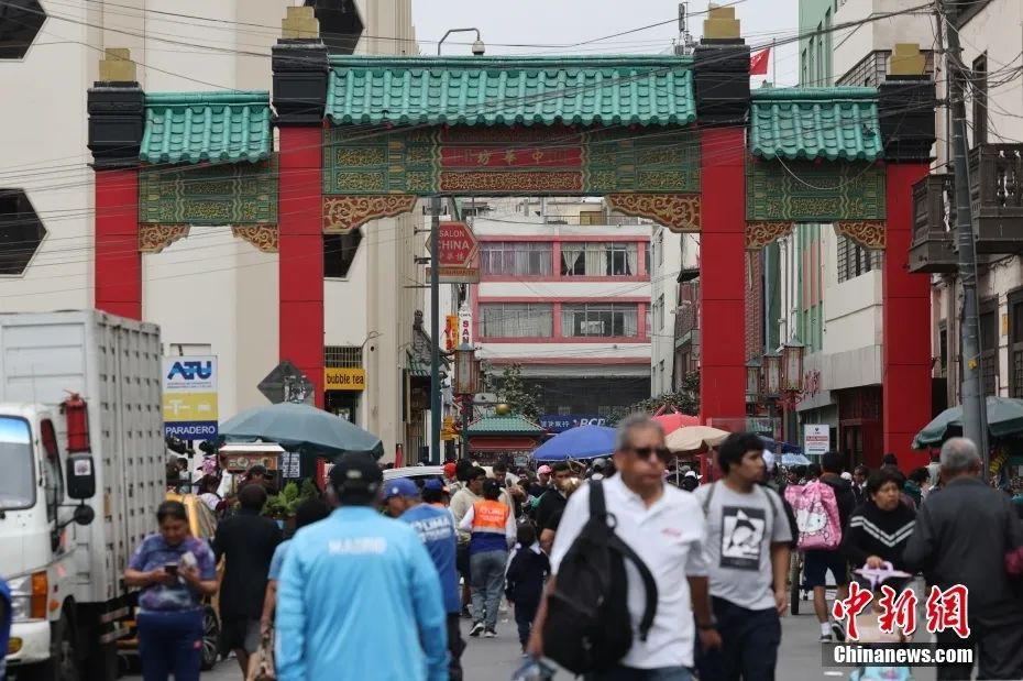 當(dāng)?shù)貢r(shí)間11月12日,秘魯首都利馬,唐人街“中華坊”牌樓。中新社記者 盛佳鵬 攝