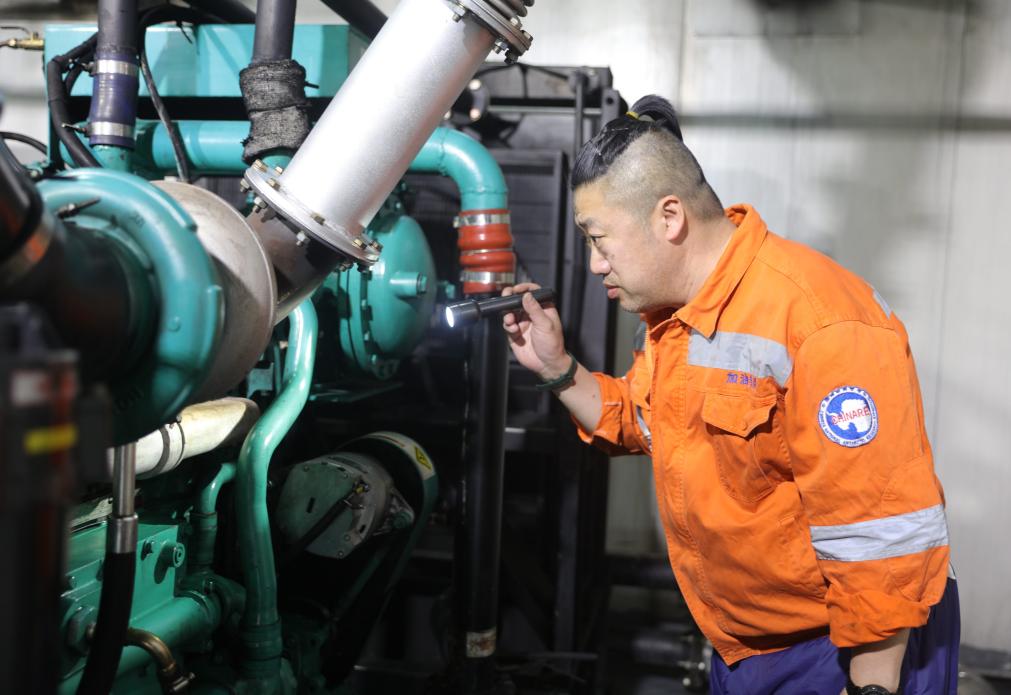作為發(fā)電班班長,張冬的主要職責(zé)是確保柴油發(fā)電機(jī)組正常運(yùn)轉(zhuǎn),為考察站輸送穩(wěn)定持續(xù)的電力?!鞍l(fā)電棟24小時(shí)需要有人值守,我們?nèi)齻€(gè)人兩班倒,每個(gè)班次12小時(shí)?!睆埗f,“值班時(shí)每兩小時(shí)巡查一次,檢查發(fā)電機(jī)組是否有安全隱患?!?/p>