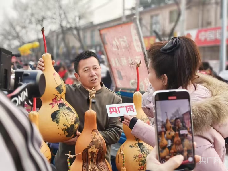 在旁邊的友誼葫蘆攤位前,形態(tài)各異、制作精致的葫蘆制品吸引了不少村民駐足觀看。山東省級非遺項目章丘葫蘆雕刻代表性傳承人馬友誼表示,這些葫蘆都是手工制作,每一個都有其獨(dú)特的寓意和故事,有些還登上國際舞臺進(jìn)行展示。