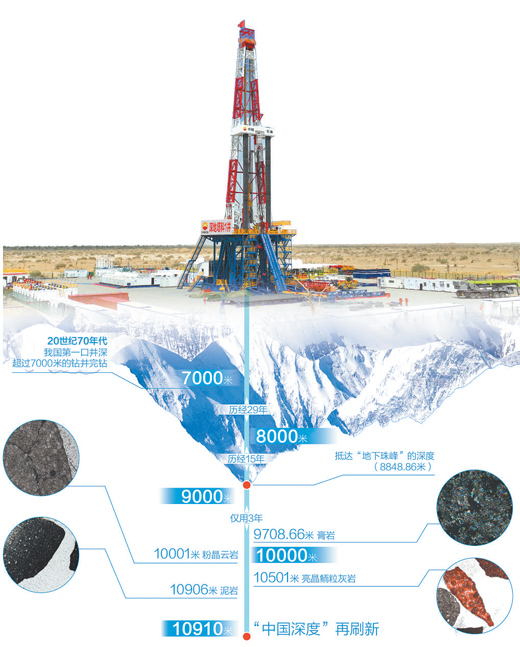 回望來路,20世紀70年代,我國第一口井深超過7000米的鉆井完鉆。從7000米到突破8000米,歷經(jīng)29年;從8000米到邁入9000米,歷經(jīng)15年;從9000米到?jīng)_破10000米大關(guān),僅用3年。