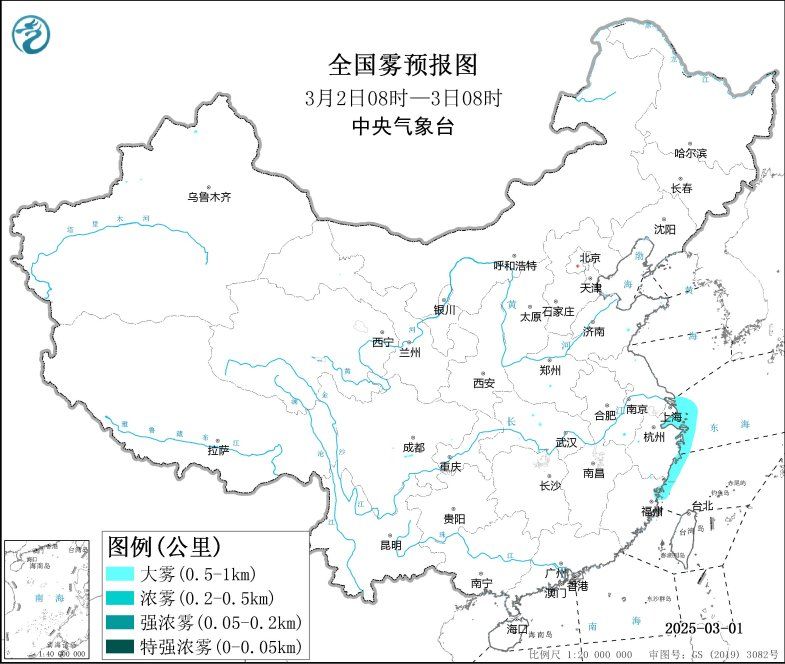 預(yù)計(jì),3月2日白天至夜間,長江口及杭州灣附近海域、舟山群島附近海域、浙江沿岸海域、上海港、寧波港將有能見度不足1公里的濃霧。
