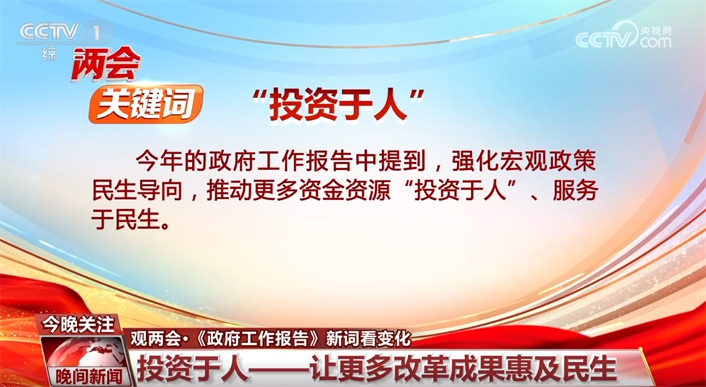 今年的政府工作報告中提到,強(qiáng)化宏觀政策民生導(dǎo)向,推動更多資金資源“投資于人”、服務(wù)于民生。把更多資金資源“投資于人”,就是將資金資源投入人的發(fā)展和保障上,讓更多改革發(fā)展成果直接作用在人身上。報告中,“居民醫(yī)保和基本公共衛(wèi)生服務(wù)經(jīng)費(fèi)人均財政補(bǔ)助標(biāo)準(zhǔn)分別再提高30元和5元”“城鄉(xiāng)居民基礎(chǔ)養(yǎng)老金最低標(biāo)準(zhǔn)再提高20元”“發(fā)放育兒補(bǔ)貼”等一系列可感可觸的民生福祉,是“投資于人”的具體體現(xiàn)。