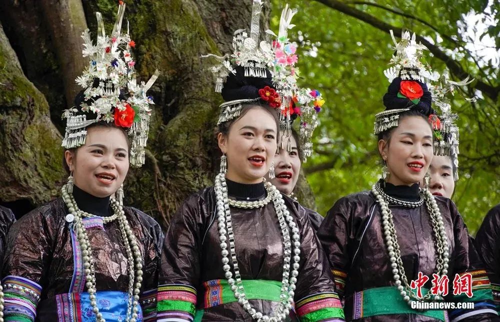 貴州侗女華麗服飾“吃相思”。賀俊怡 攝