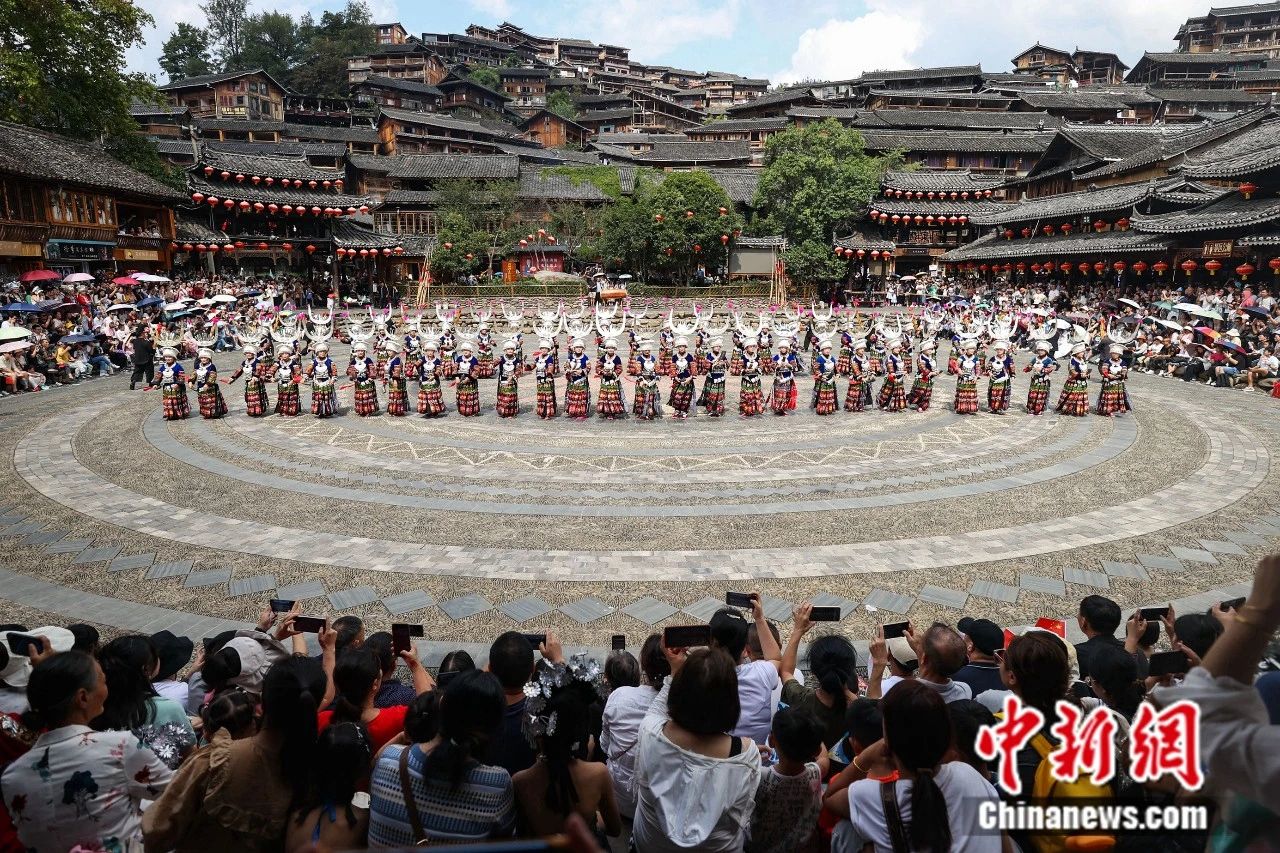 游客在貴州西江千戶苗寨游玩。中新社記者 瞿宏倫 攝