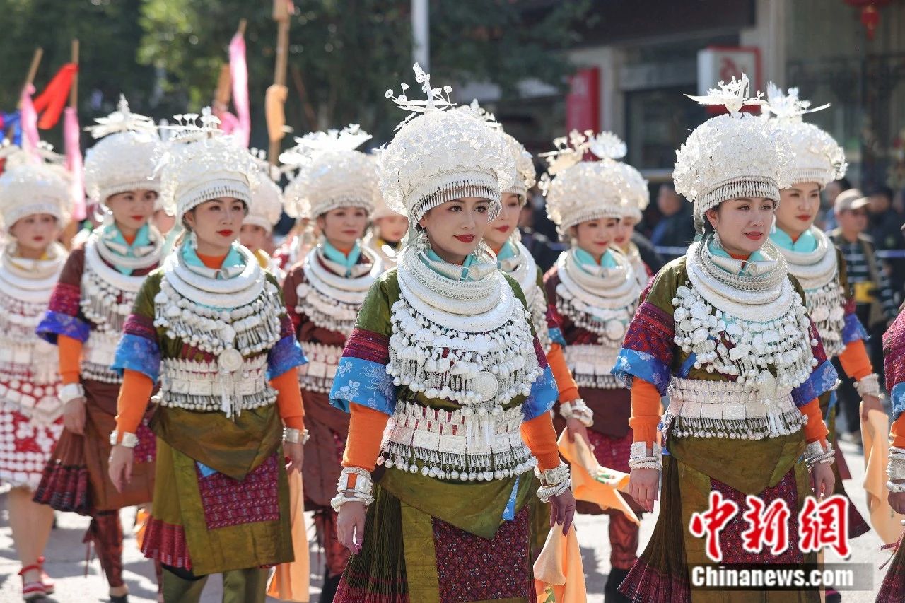 苗年巡游活動。中新社記者 瞿宏倫 攝