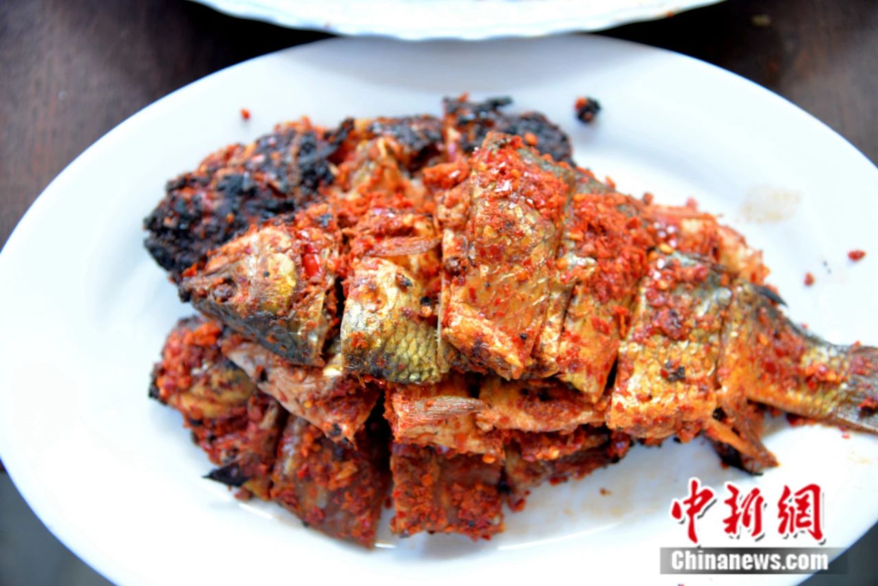 黑毛豬燒烤。中新社記者 蒲文思 攝