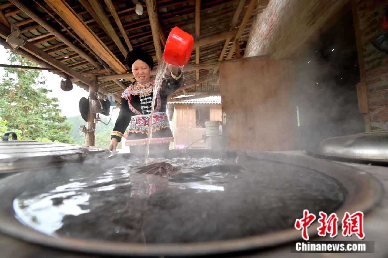 貴州省從江縣丙妹鎮(zhèn)大塘村五里坡瑤寨的村民在舀藥水準備給客人洗浴。吳德軍 攝