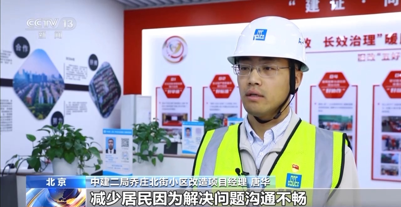 中建二局喬莊北街小區(qū)改造項目經(jīng)理 唐華:借鑒物業(yè)式的管理,想出來的這種施工樓棟管家服務(wù)模式,減少居民因?yàn)榻鉀Q問題溝通不暢導(dǎo)致的一些投訴。