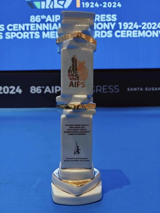 在2024年4月29日舉行的國際體育記者協(xié)會頒獎典禮上,成都大運會獲得2023年度綜合賽事最佳媒體設(shè)施服務(wù)獎。新華社發(fā)