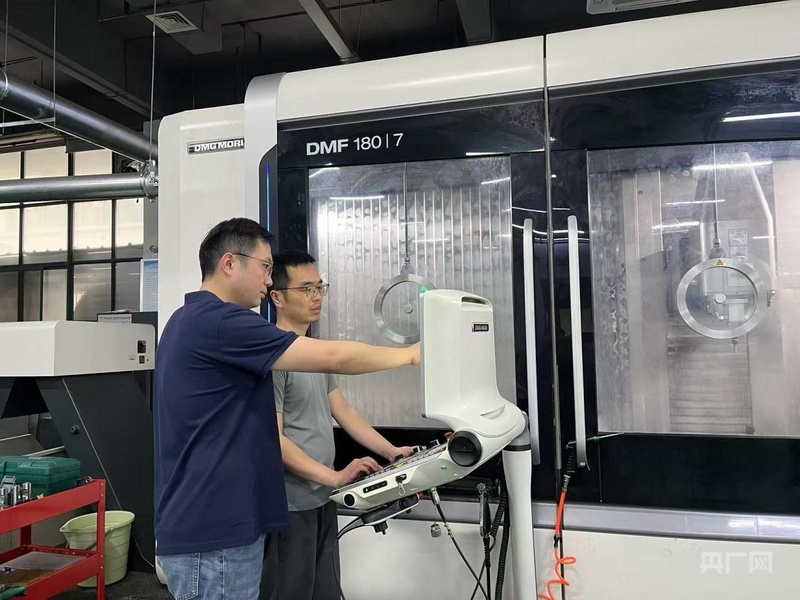 楊浩駿與團(tuán)隊成員研究航空裝配制孔技術(shù)(央廣網(wǎng)記者 欒永勝 攝)