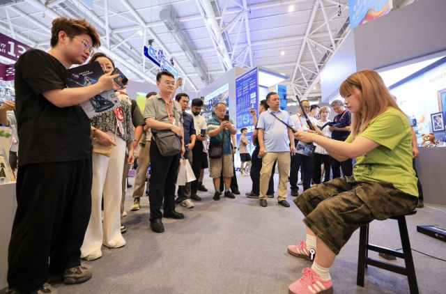 本屆文博會“文化+科技”雙輪驅(qū)動還體現(xiàn)在:首次設(shè)立人工智能展區(qū),邀請60多家人工智能領(lǐng)域知名企業(yè)參展,創(chuàng)新呈現(xiàn)新質(zhì)生產(chǎn)力與文產(chǎn)新業(yè)態(tài)、新消費(fèi);AI會展助手“文小博”首次亮相,升級展會服務(wù)數(shù)智化;多個具身機(jī)器人也參與迎賓、志愿服務(wù)、導(dǎo)覽、采訪等工作。文化基因注入AI算法,是這場“文化盛宴”的生動寫照。