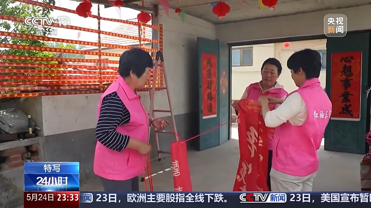 距離兒子的婚禮還有三天,三河埠村村民魏祥年家里已經忙碌起來。陪著老魏夫婦一起忙活的,除了親友,還有好幾位穿著粉色志愿服務馬甲的大姐。
