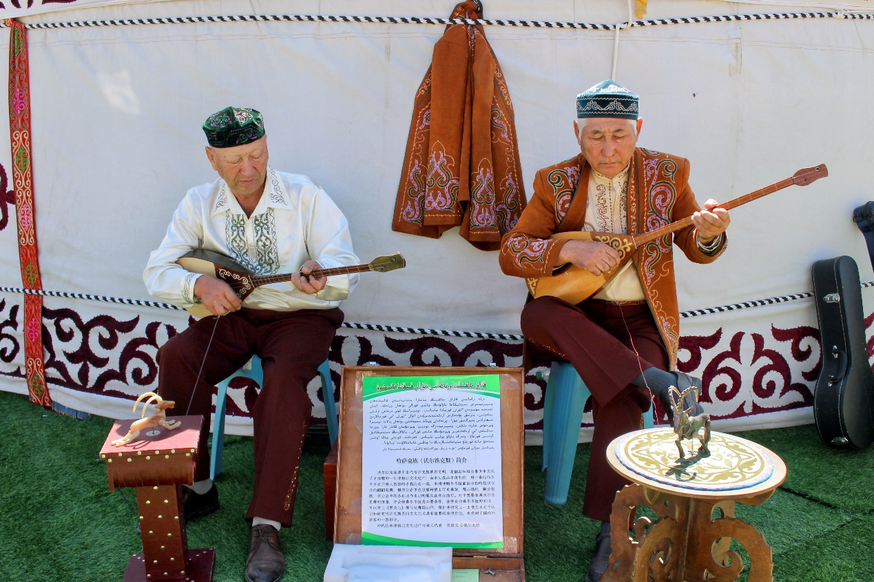 彩虹布拉克的氈房外有非遺沃爾鐵克的技藝表演,采訪團(tuán)被“會(huì)跳舞的小山羊”所吸引。非遺沃爾鐵克代表性傳承人賽里克·合德?tīng)柮榻B到,“沃爾鐵克”在哈薩克語(yǔ)中是“領(lǐng)頭羊”的意思,哈薩克族在與自然交往的過(guò)程中度過(guò)游牧?xí)r代,“沃爾鐵克”不僅是小孩子解悶的兒時(shí)玩具,也是代代相傳的精神文明。伴隨著冬不拉的彈奏,撥弦的手牽動(dòng)連著“小山羊”的線(xiàn),控制著它的跳躍姿勢(shì),模仿巖羊在懸崖峭壁上行走奔跑。