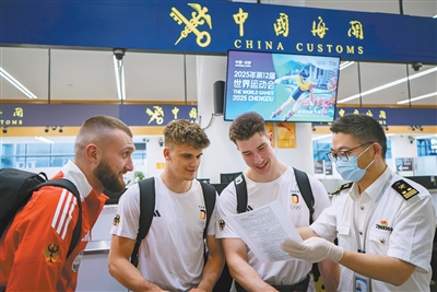 “世運會期間正值暑運高峰,成都天府國際機場出入境人數(shù)較平常增加了1.5倍,我們優(yōu)化了智能檢查通道,保障旅客快捷通關(guān);還開設(shè)了世運會專用窗口,為涉賽人員提供通關(guān)、咨詢等‘一站式’服務(wù)?!背啥己jP(guān)相關(guān)負責人薛珂說。據(jù)了解,8月3日至18日是成都世運會官方抵離服務(wù)期,預(yù)計將有超過5000名涉賽人員從成都天府國際機場等口岸通關(guān)。
