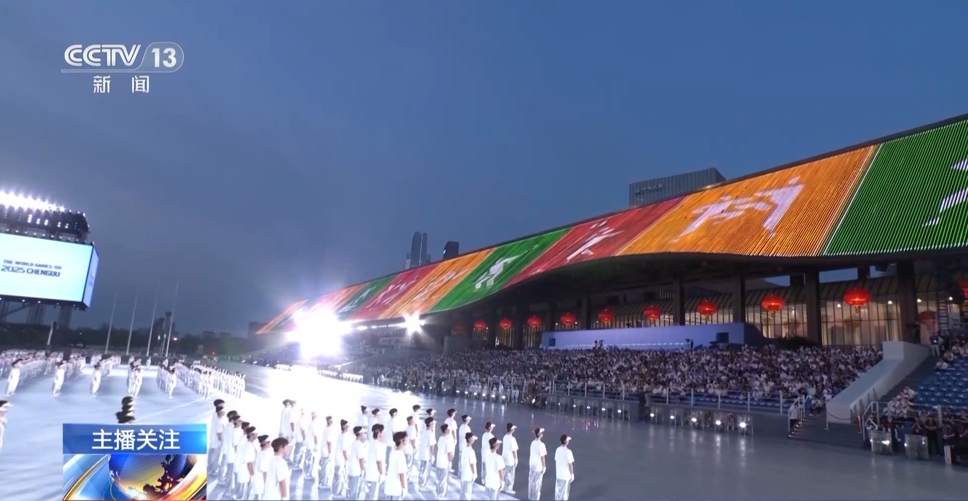 成都世運會開閉幕式總制作人 王銳祥:等于那個舞臺是180度。以往在一個體育場館里面的舞臺有聚焦點,但在戶外,基本上人所看到的舞臺層面,都要表達,所以這個是考驗我們導演、舞美、燈光師在聚焦點,怎么把我們的觀眾拉回這個舞臺上。如果沒有一個很強烈的細節(jié)感受,沒有辦法把觀眾的細節(jié)拉回中心舞臺。