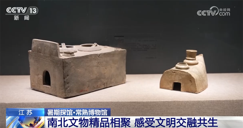 再來(lái)看這兩件展品,它們都是灰陶灶,是明器的一種,而且都是一孔灶,但是出土于北方和南方的灰陶灶明顯在風(fēng)格上是不一樣的,北方的更為方正,而南方的這個(gè)船型灶也是屬于江南地區(qū)特有的灰陶灶。