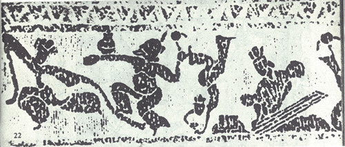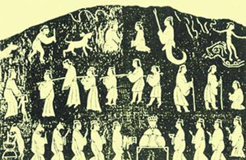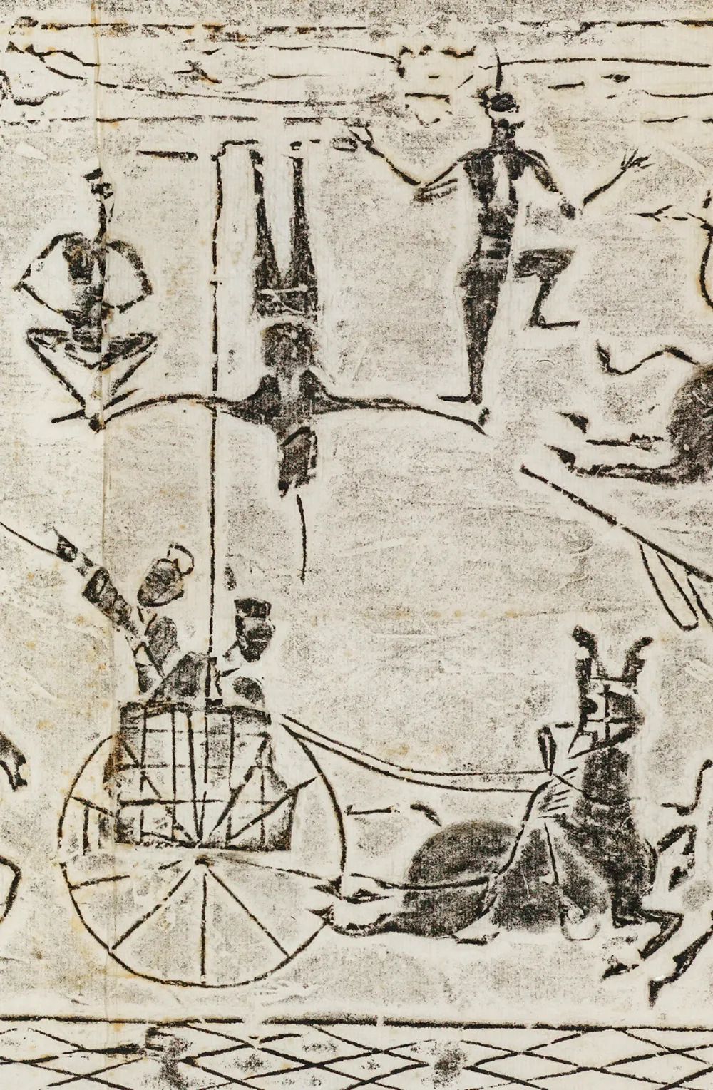 斜索戲車畫像磚以線面結(jié)合的手法分層敘事