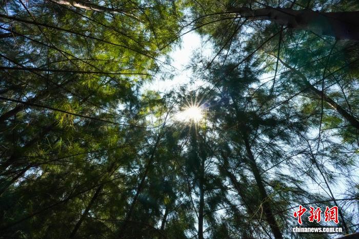 在某島礁,官兵培育的植物種類已達(dá)120余種,植被覆蓋率超過90%,成片的木麻黃林、抗風(fēng)桐林、大葉欖仁樹林鱗次櫛比地分布在各個角落,林下土壤表層出現(xiàn)了落葉和枯草形成的腐殖質(zhì),喬、灌、草銜接互補(bǔ)的森林植物群落生長格局正在加速形成。