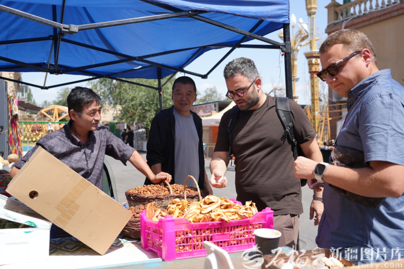 8月22日,研修班一行在哈密阿勒屯古街購買哈密瓜干。仲銀堂攝