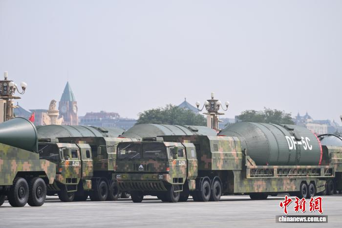 9月3日,紀念中國人民抗日戰(zhàn)爭暨世界反法西斯戰(zhàn)爭勝利80周年大會在北京隆重舉行。圖為核導彈第二方隊“東風-5C”液體洲際戰(zhàn)略核導彈駛過天安門廣場。 中新網(wǎng)記者 趙文宇 攝