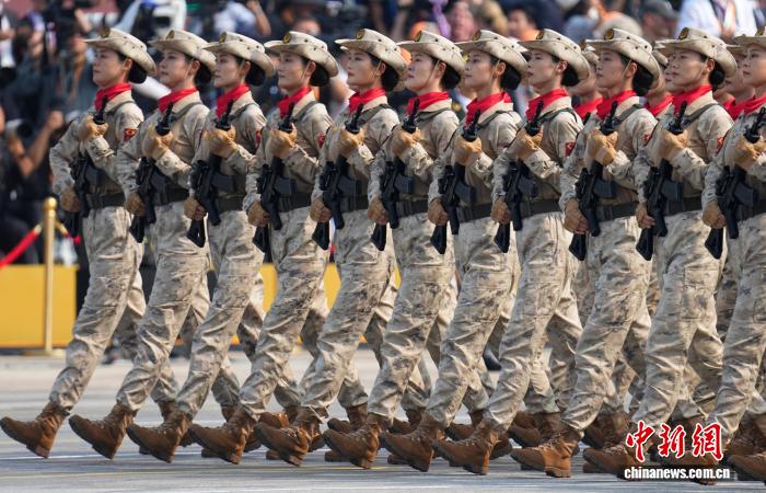9月3日,紀念中國人民抗日戰(zhàn)爭暨世界反法西斯戰(zhàn)爭勝利80周年大會在北京隆重舉行。圖為民兵方隊接受檢閱。該方隊全部由女民兵組成,這是民兵首次亮相以紀念抗戰(zhàn)勝利為主題的閱兵活動?!≈行戮W(wǎng)記者 趙文宇 攝