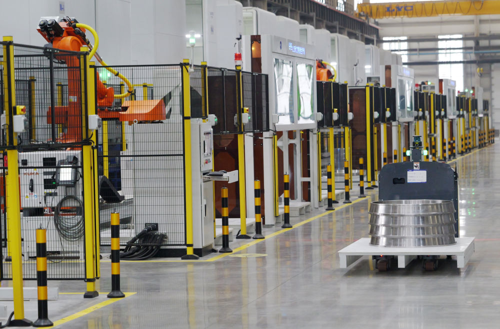 5月22日,自動導(dǎo)引車在洛軸集團智能工廠生產(chǎn)線上作業(yè)。新華社記者 李嘉南 攝