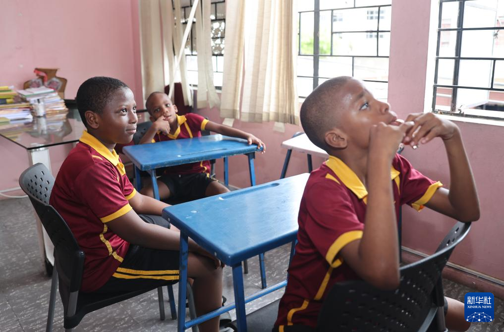 9月4日,在牙買(mǎi)加首都金斯敦艾特特殊教育小學(xué),學(xué)生學(xué)習(xí)中文。新華社記者 李夢(mèng)馨 攝