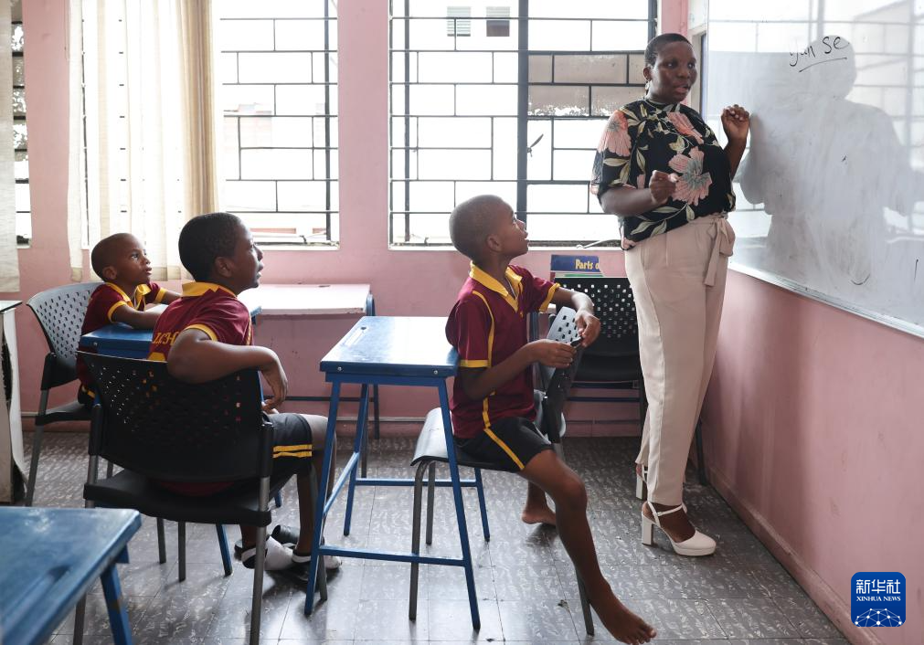 9月4日,在牙買(mǎi)加首都金斯敦艾特特殊教育小學(xué),校長(zhǎng)娜塔莎·拉塞爾在授課。新華社記者 李夢(mèng)馨 攝