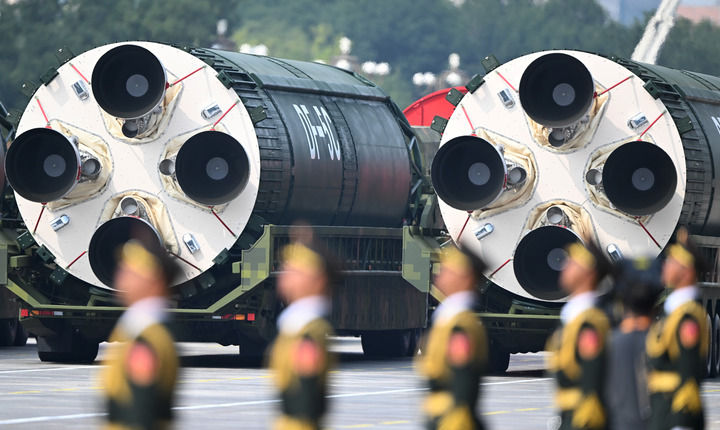 ↑9月3日,紀(jì)念中國人民抗日戰(zhàn)爭(zhēng)暨世界反法西斯戰(zhàn)爭(zhēng)勝利80周年大會(huì)在北京隆重舉行。這是核導(dǎo)彈第二方隊(duì)接受檢閱。