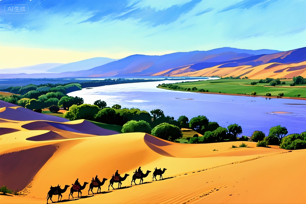 寧夏沙坡頭旅游區(qū)。圖片由AI生成