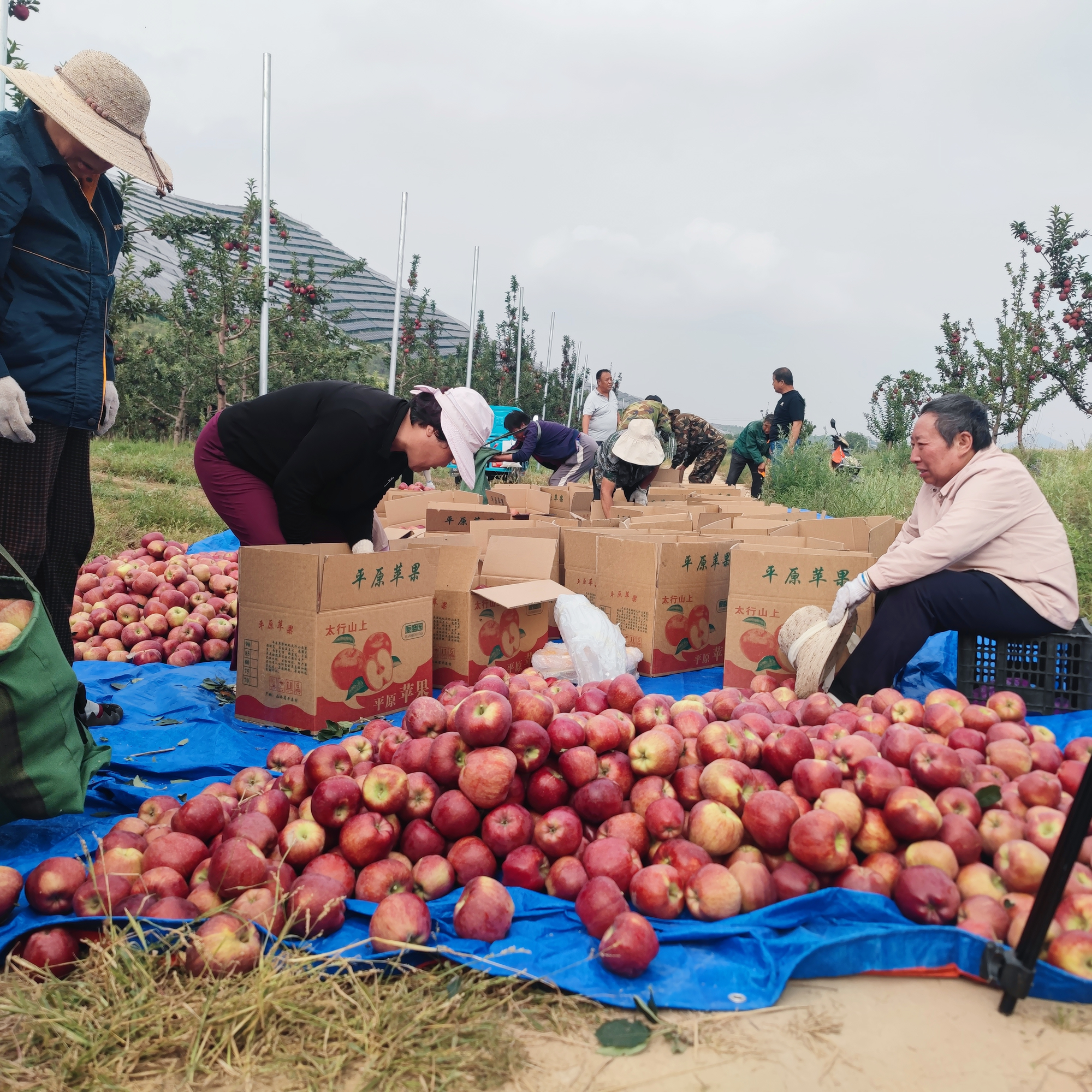 “家人們、老鐵們,蘋果現(xiàn)在到了成熟的季節(jié),這是咱們平原村的蘋果,日照時間特別的充足,口感特別的清甜,品質這么好的蘋果,大家需要的話可以來采摘……”在山西晉中市昔陽縣趙壁鄉(xiāng)平原村蘋果種植基地,主播正舉著鮮紅的紅星蘋果,對著鏡頭熱情推介。直播間里訂單不斷,果園里更是一派熱鬧景象——村民們穿梭在果樹間采摘,分揀攤上的蘋果堆成小山,金秋的豐收氣息撲面而來。