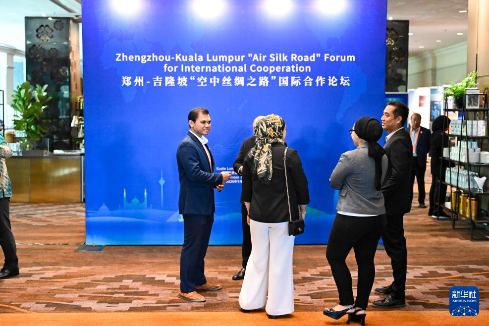 9月18日,馬來西亞吉隆坡國際機(jī)場舉行的鄭州-吉隆坡“空中絲綢之路”國際合作論壇開始前,嘉賓們在會場外交流。新華社記者 程一恒 攝