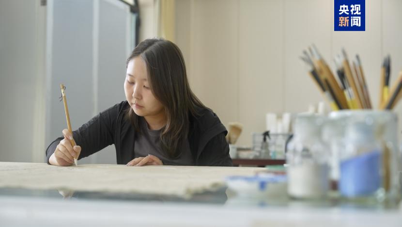 “年輕一代在臨摹創(chuàng)作的過程中,會刻下屬于我們的時代烙印,展現(xiàn)不同的審美與藝術(shù)理念?!笨俗螤柺哐芯克佬g(shù)師艾潤說。她和同事們用細(xì)致入微的筆觸,為壁畫延續(xù)生命,讓石窟在新時代綻放新的光彩。