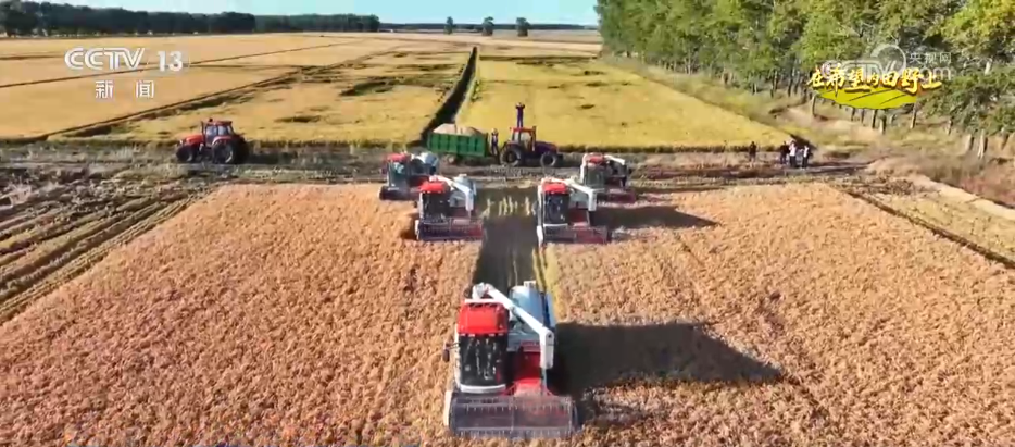 在綏濱縣新富鄉(xiāng)的稻田里,多臺現(xiàn)代化收割機(jī)正在緊張作業(yè)。伴隨著機(jī)器的轟鳴聲,一排排稻稈被快速卷入收割機(jī),經(jīng)過脫粒、篩選等工序,飽滿的稻谷源源不斷地從出糧口傾瀉而出,裝入一旁等候的運(yùn)輸車輛中。