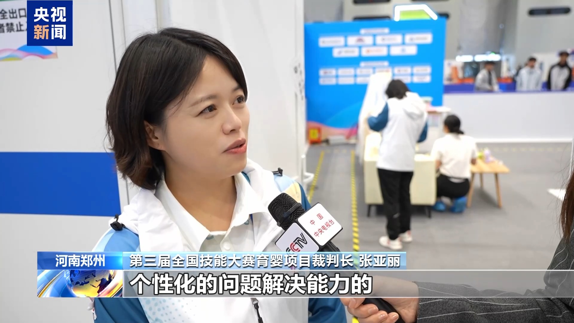 第三屆全國技能大賽育嬰項目裁判長 張亞麗:我們借鑒了世界技能大賽的一些有益做法,去提升我們整體的職業(yè)標準和服務水平。