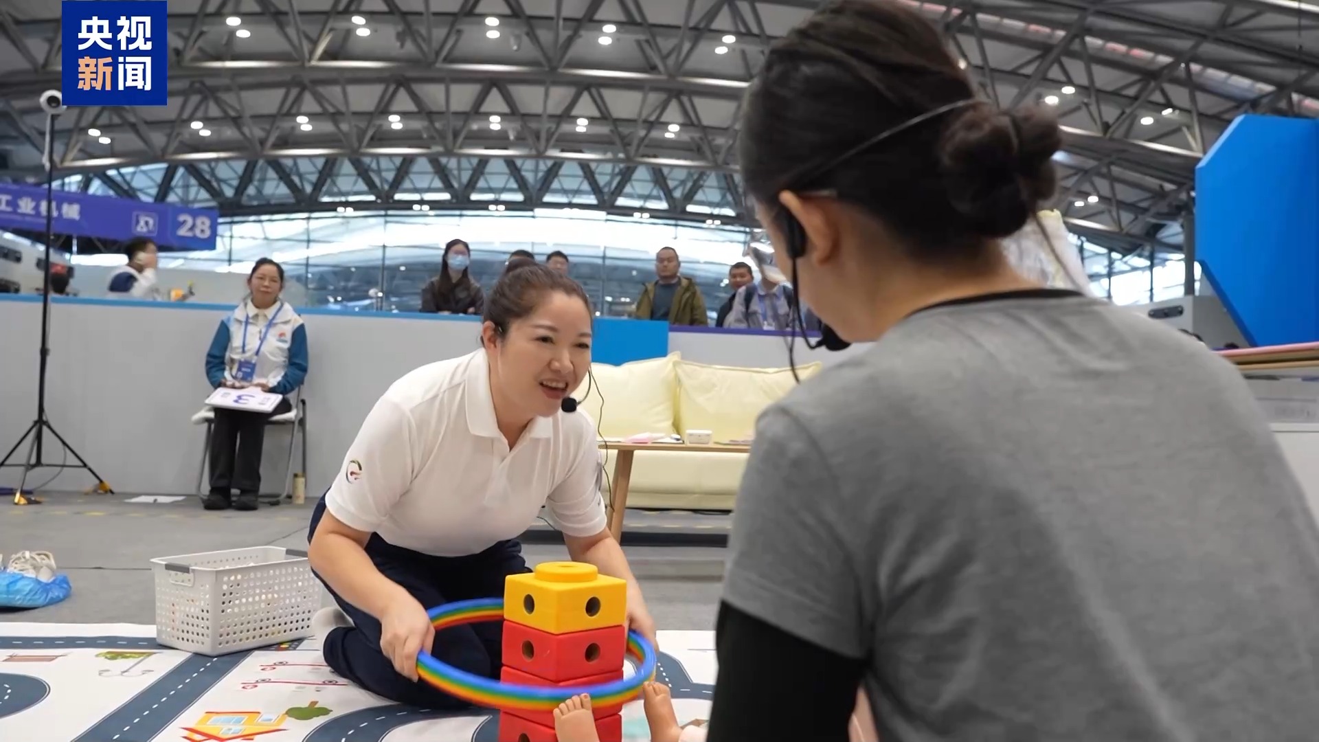 賽場上,一個個格子間按照真實居家場景布置,選手們按照流程,完成從上門拜訪、嬰兒互動、游戲設計、家長交流等系列服務工作。記者注意到,這次比賽創(chuàng)新引入會哭鬧的智能化模擬嬰兒,選手抱姿不對、饑餓都會有數(shù)據(jù)反饋,考驗選手的回應性照顧能力,同時邀請了一些嬰幼兒家長進行配合互動。