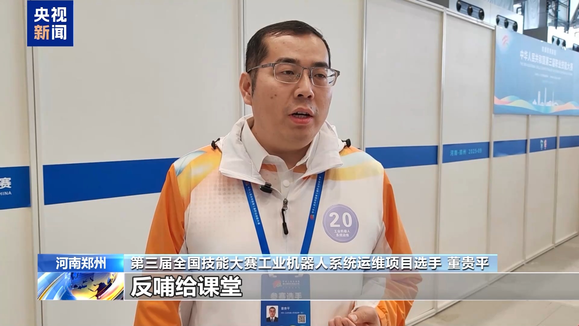第三屆全國技能大賽工業(yè)機器人系統(tǒng)運維項目選手 董貴平:能夠把學到的一些實操技能以及理論知識,反哺給課堂,提升學生的理論儲備以及實操的技能。