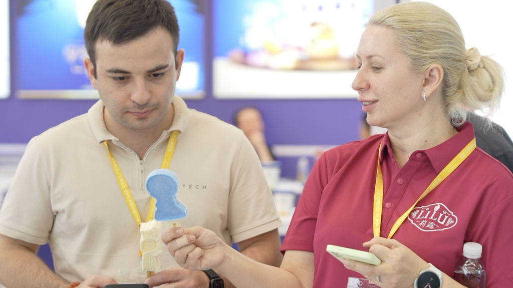 在東北大板品牌展區(qū),蜜瓜、芒果、百香果造型的水果味冰淇淋吸引了眾多客商品嘗,該系列產(chǎn)品遠銷新西蘭、加拿大、馬來西亞、新加坡等國家和地區(qū)。