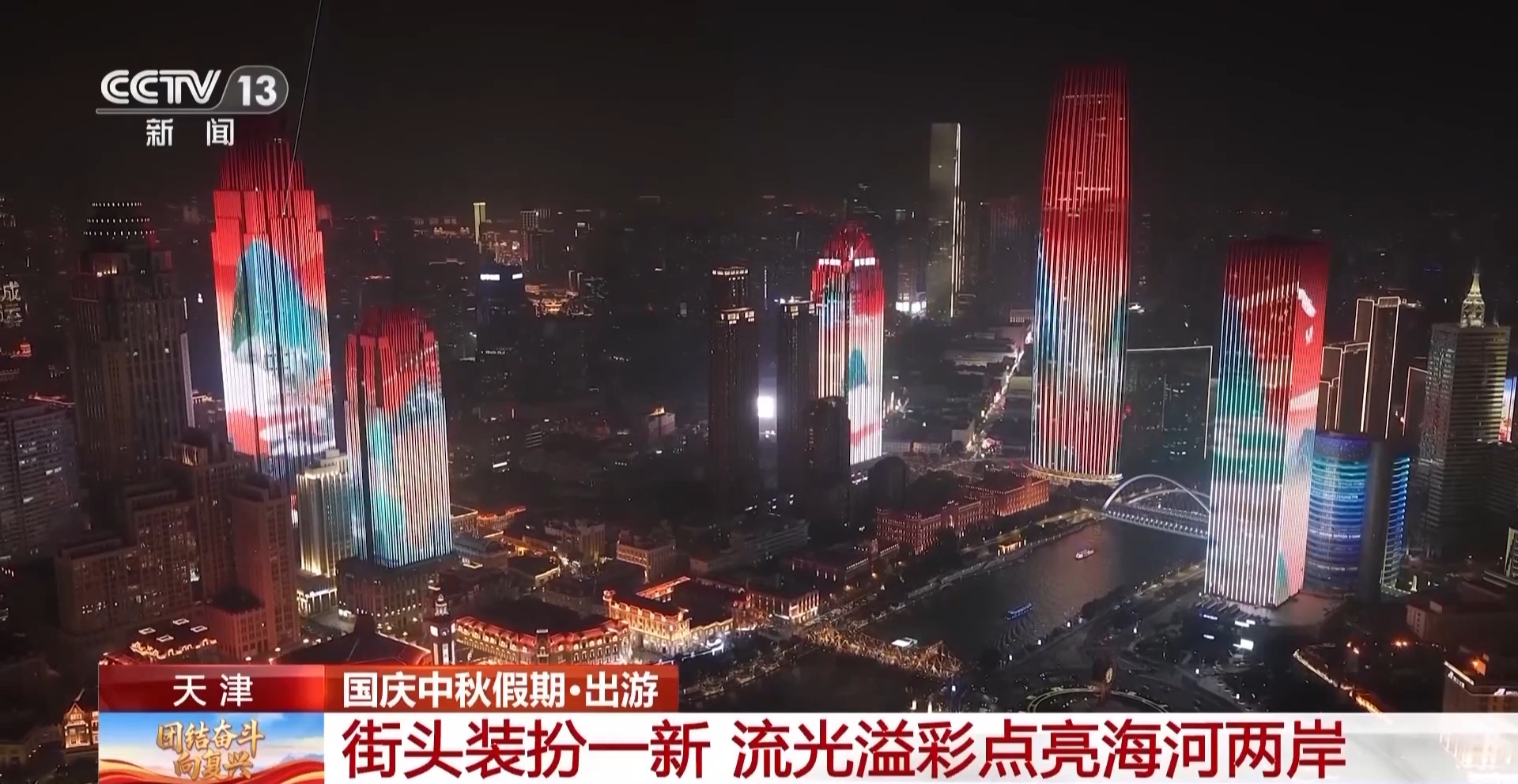 為慶祝國慶,天津街頭裝扮一新。1.8萬面國旗裝點城市街道,1.7萬多個花箱花籃鮮花盛開,80個新建提升的口袋公園全面開放,各個綠化節(jié)點、美麗街角裝扮一新,處處洋溢著喜慶祥和的節(jié)日氛圍。同時,天津還對海河夜景燈光秀進行了升級,打造國慶主題創(chuàng)意燈光秀。燈光秀既展現(xiàn)了長城、黃河、長江等祖國壯麗風光,也呈現(xiàn)了天津七里海濕地、盤山秋色等本地美景,一派喜氣祥和。