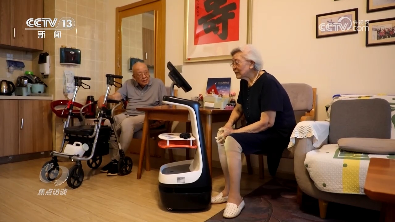 在深圳一家養(yǎng)老院,健康檢測機(jī)器人接到指令,就自己導(dǎo)航到老人身邊,提醒她測血壓。