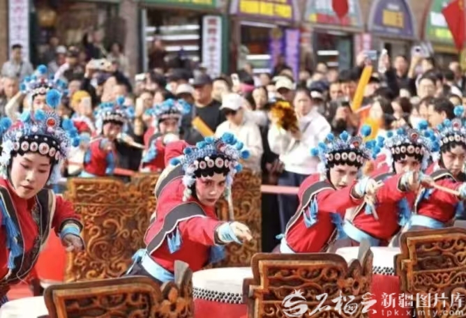 10月1日12時,新疆國際大巴扎步行街化身為一片沸騰的海洋,來自陜西神木的非物質(zhì)文化遺產(chǎn)代表性項目——“忠勇楊家鼓”在此激情上演,為八方來客獻(xiàn)上一場氣勢磅礴的傳統(tǒng)民俗盛宴。
