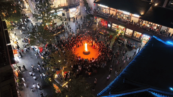 中秋節(jié)來(lái)臨之際,位于安徽省阜陽(yáng)市潁州區(qū)的雙清灣水街熱鬧非凡,一場(chǎng)延續(xù)近800年的中秋火把祈福習(xí)俗煥新登場(chǎng),連串的火把依次亮起,如火龍蜿蜒穿行,吸引近5000名市民打卡。