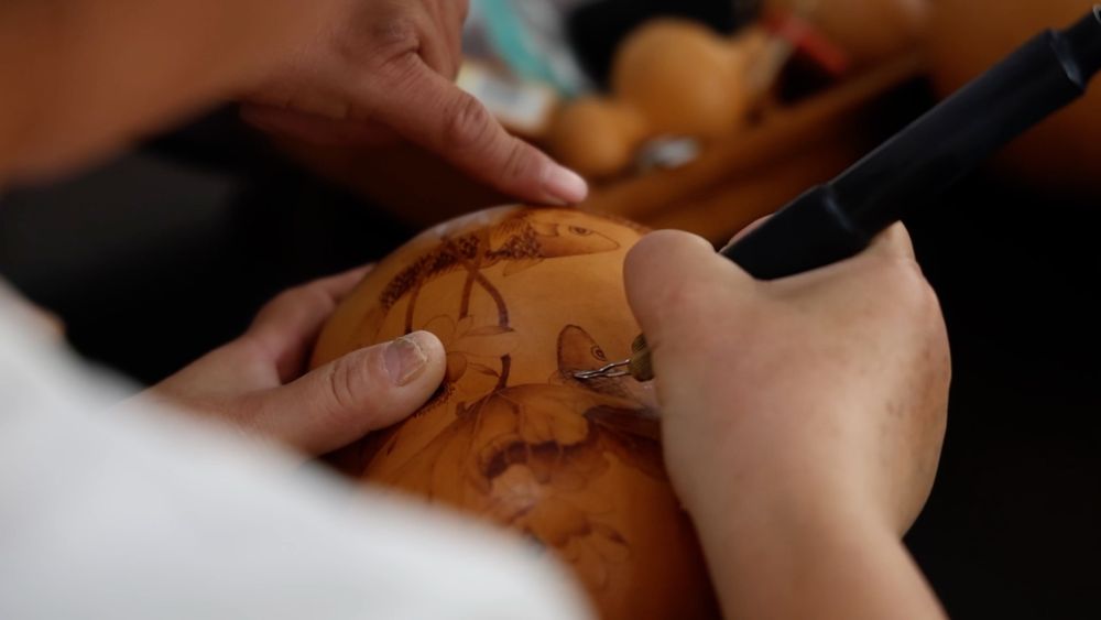 金秋10月,天津市濱海新區(qū)太平鎮(zhèn)的田野間,連片葫蘆地迎來(lái)豐收。在太平葫蘆特色產(chǎn)業(yè)園加工車(chē)間,工匠們以鐵為筆,在葫蘆上勾勒出精細(xì)的山水、花鳥(niǎo)或福祿圖案。經(jīng)過(guò)打磨、烙畫(huà)、拋光等工序,普通葫蘆價(jià)值得到大幅提升。