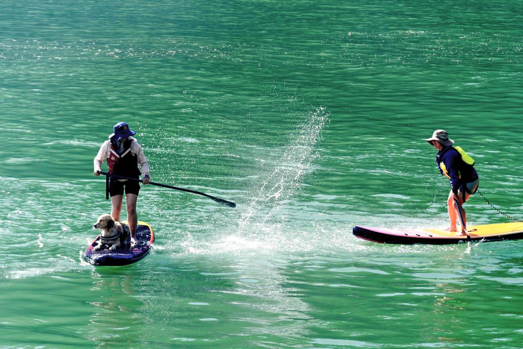 10月4日,游客在云南大理南澗彝族自治縣公郎鎮(zhèn)猛龍渡體驗槳板。新華社發(fā)(適志宏 攝)