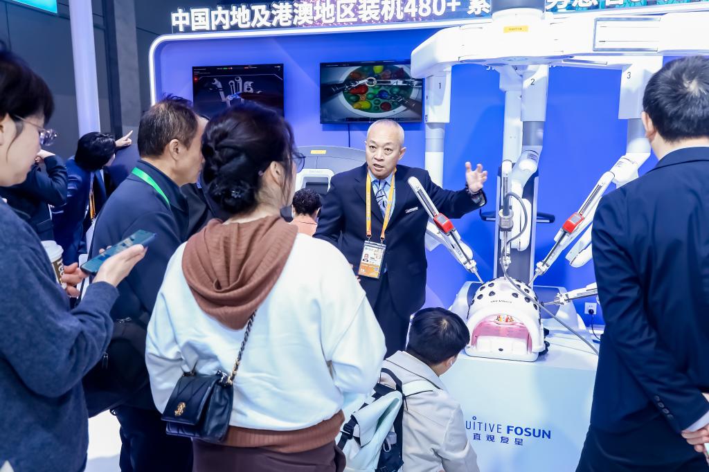 手術(shù)機(jī)器人是各家跨國(guó)醫(yī)療行業(yè)企業(yè)展示數(shù)智創(chuàng)新、產(chǎn)業(yè)協(xié)作的重頭戲。作為每年醫(yī)療展區(qū)的“明星展品”,八赴進(jìn)博的達(dá)芬奇手術(shù)機(jī)器人今年首次集齊“全家?!?。