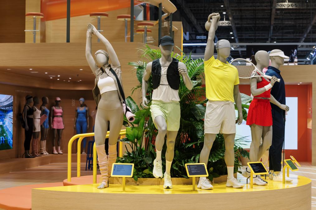 露露樂(lè)蒙展臺(tái)以“好狀態(tài)趣動(dòng)場(chǎng)”為主題,展示品牌在瑜伽、跑步、訓(xùn)練、網(wǎng)球、高爾夫和日常出行六大品類(lèi)的明星產(chǎn)品。受訪(fǎng)者供圖