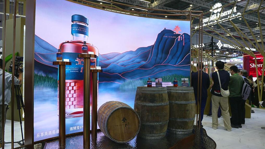 國(guó)際知名烈酒集團(tuán)將首款中國(guó)原產(chǎn)威士忌疊川放在了展臺(tái)“C位”。受訪(fǎng)者供圖