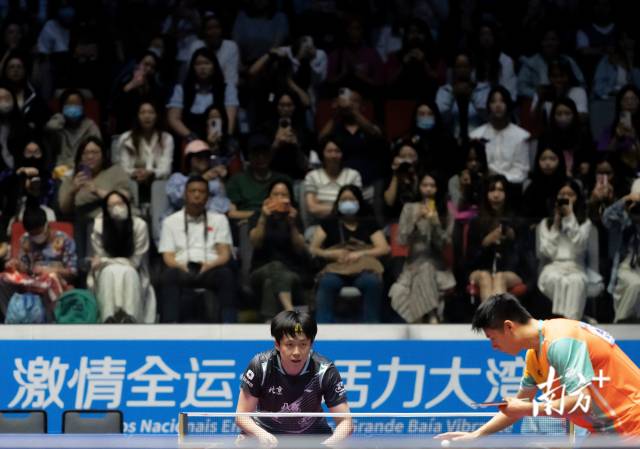 11月10日,全運(yùn)會(huì)乒乓球男子單打比賽,觀眾在球員發(fā)球前暫停助威。董天健 攝