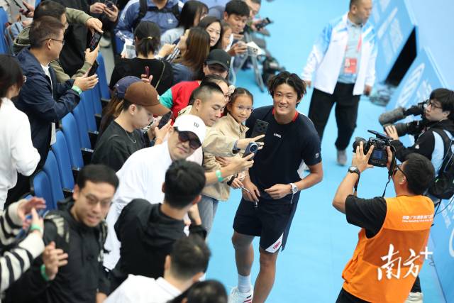 11月3日,大量球迷來到全運(yùn)會(huì)賽場(chǎng),與球員張之臻在賽后熱情互動(dòng)。許舒智 攝